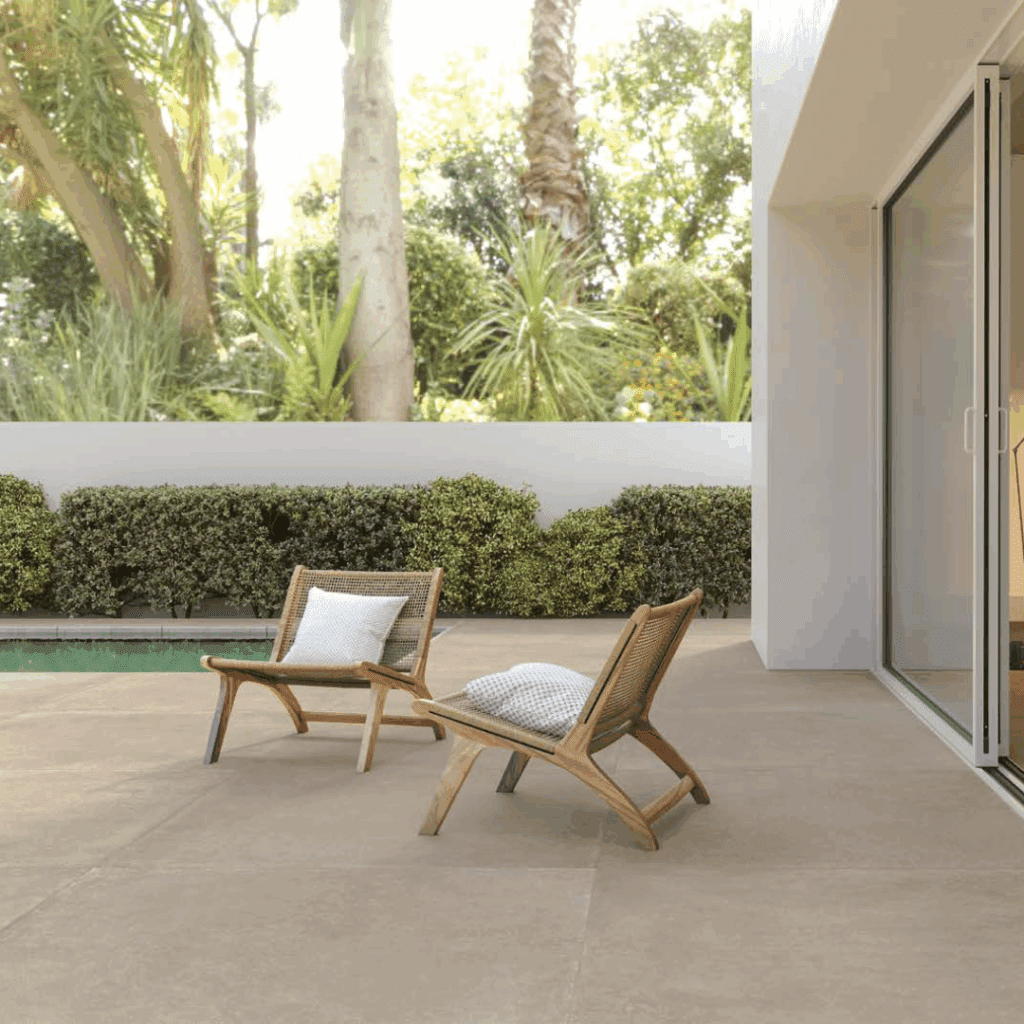 Gres porcellanato per esterno effetto cemento e resina: modernità, resistenza e continuità estetica