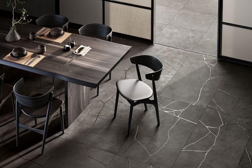 L’arte di ricomporre è la delicata lezione simbolica suggerita dall’antica arte del kintsugi, che Fioranese ripropone su piastrelle effetto cemento che si incontrano con la luminosa brillantezza del metallo, per arricchire ambienti accoglienti e non convenzionali.
