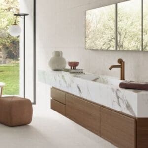 Le superfici in gres effetto cemento e resina offrono una texture morbida e omogenea, capace di amplificare la luminosità e creare una sensazione di continuità visiva. Il materiale, compatto e non poroso, garantisce resistenza a usura, macchie e umidità, mantenendo la bellezza originaria nel tempo con una manutenzione semplice.