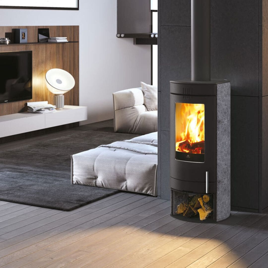 Description: Wood-burning stove with a 'suspended design' effect.