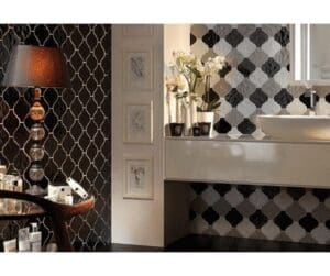 La linea Arabesque propone uno stile unico, dalle forme morbide ed i toni polverosi e neutri illuminati, a contrasto, dalle finiture GOLD, SILVER e dall’immancabile ROSSO SELENIO, detto anche ROSSO TONALITE. Riprendendo la forma classica della losanga provenzale ed utilizzando il gioco cromatico delle smaltature lucide o matt le pareti possono essere interpretate al meglio come resa decorativa, grazie alle infinite possibilità di composizione e accostamento.