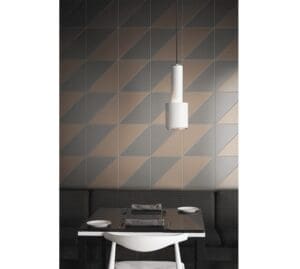 Collezione di piastrelle da pavimento e rivestimento d’interni, in gres smaltato e rettificato, composta da quattordici colori opachi suddivisi in tre categorie – neutri, di fondo e di testa – e declinata in tre formati diversi. La scelta della tinta unita opaca, che dona una consistenza setosa e materica alla collezione, è arricchita con una texture materica, che richiama la trama di una tela stampata sulla piastrella: micro variazioni quasi impercettibili, che inducono chi le guarda ad avvicinarsi, per scoprirne ogni più piccolo dettaglio e unicità. Tutti i formati di Pittorica, quadrato – 25×25 cm – rettangolare – 6×25 cm – e triangolare – 25x25x35 cm, spessore 10 mm, sono compatibili tra loro, e consentono schemi decorativi articolati e creativi. La capacità decorativa di Pittorica viene esaltata dai nuovi formati rettificati, in grado di garantire soluzioni di posa a fuga minima, sia a pavimento che a rivestimento, dove l’espressività del colore si evidenzia in tutta la sua modernità.