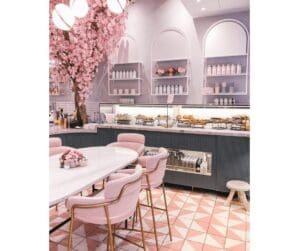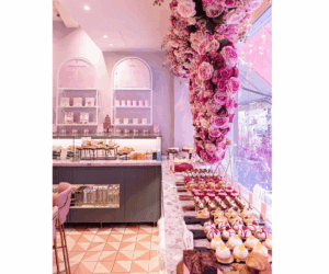 Grazie al trionfo del rosa in ogni sua possibile nuance, sembra di entrare nel mondo perfetto delle fiabe, arredi accoglienti e curati nel minimo dettaglio, un’intera parete è completamente ricoperta di rose, il #wall più “instagrammato” del momento, il set perfetto per scattare un #selfie da postare con il tradizionale corredo di #tag.