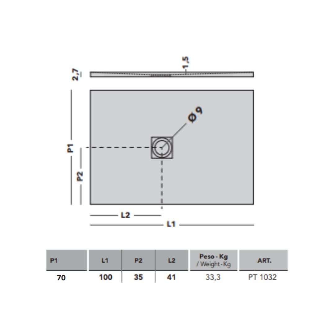 Taglio su misura: Si può tagliare, con una smerigliatrice flessibile, il lato opposto alla piletta max 20cm, tutti gli altri lati max 10cm.