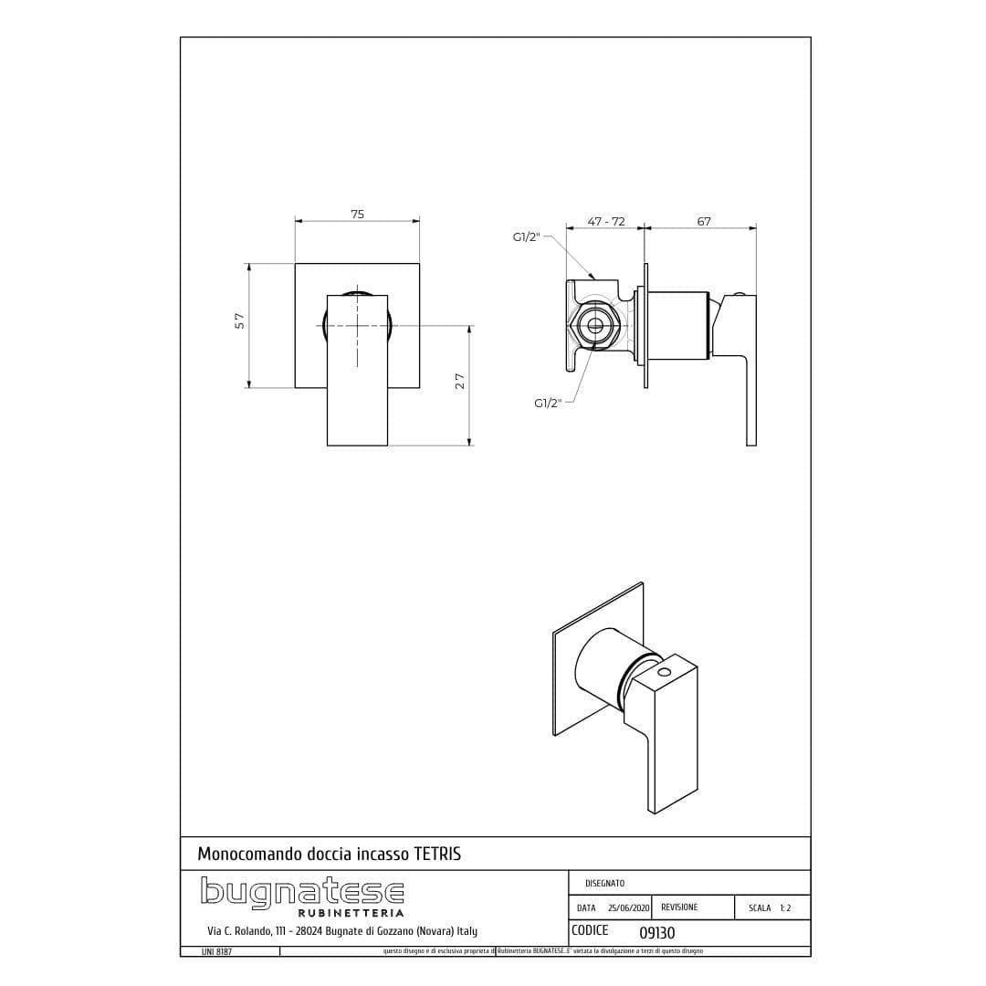 Caratteristiche tecniche: Miscelatore monocomando per incasso a 1 via con cartuccia da 35 mm, compatibile con il sistema cover. Utilizza il corpo incasso articolo 19891. (incluso)