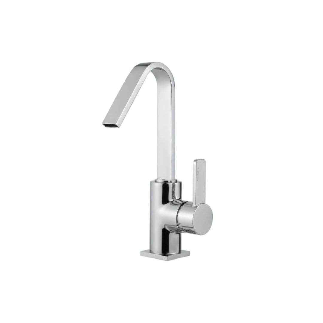 Caratteristiche tecniche: Miscelatore monocomando da lavabo con canna piatta girevole, scarico da 1″ 1/4 con flex inox, con cartuccia da 35 mm.