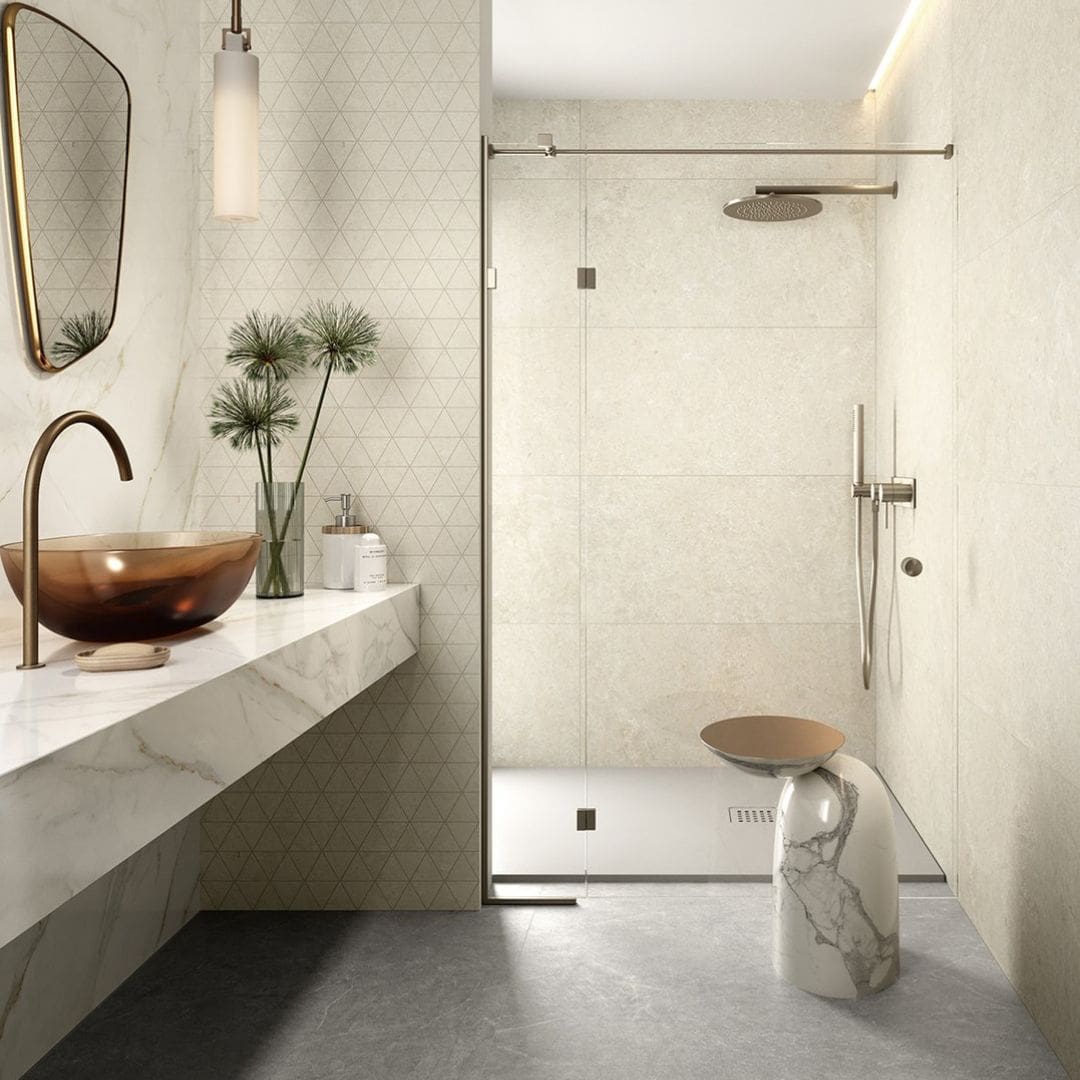 Con la collezione Arkistyle, Marca Corona prosegue la propria esplorazione nel mondo delle pietre, proponendo un ricercato connubio tra due affascinanti varietà . Una Limestone caratterizzata da inclusioni di fossili marini appena accennate e amalgamante con il fondo, e una accattivante rivisitazione contemporanea del Terrazzo, contraddistinta dalla presenza di scaglie multicolor, a creare un effetto di contrasto molto raffinato.