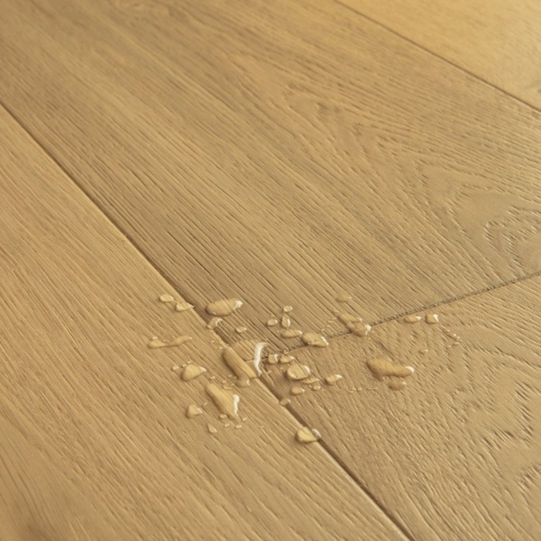• Resistente all’acqua – Puoi dire addio ai problemi di umidità scegliendo un pavimento Quick-Step resistente all’acqua. Questi pavimenti non solo hanno un aspetto eccezionalmente elegante e naturale, sono anche resistenti all’umidità al 100%, il che li rende facilissimi da pulire!