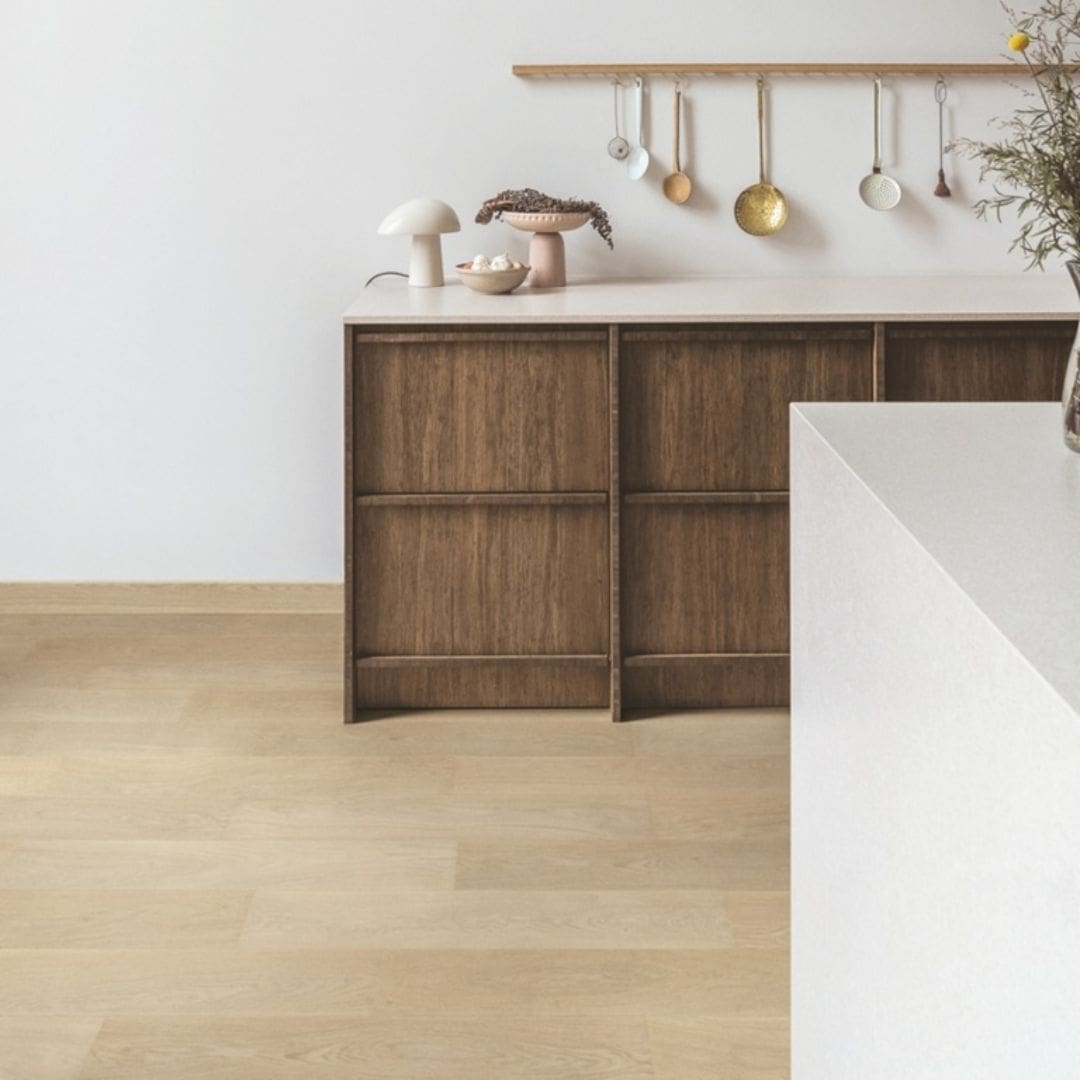 • Accessori abbinati – Quick-Step è più di un semplice pavimento. Per ogni pavimento che offriamo, puoi trovare una collezione completa di accessori, tra cui sottofondi, profili di finitura e battiscopa che si abbinano perfettamente al colore del pavimento.