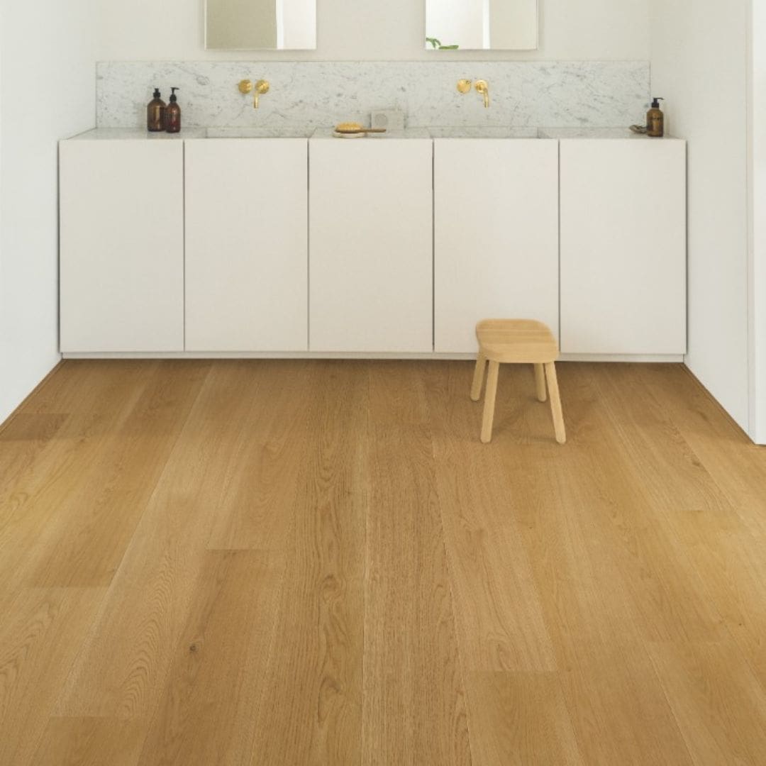 • Resistente all’acqua – Puoi dire addio ai problemi di umidità scegliendo un pavimento Quick-Step resistente all’acqua. Questi pavimenti non solo hanno un aspetto eccezionalmente elegante e naturale, sono anche resistenti all’umidità al 100%, il che li rende facilissimi da pulire!