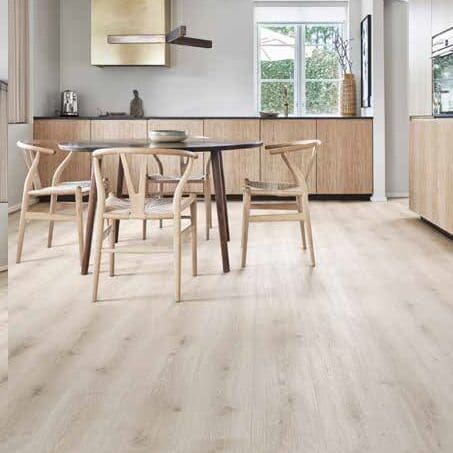 La soluzione adatta alle ristrutturazioni: sottile ma super resistente, può essere installarlo su sottofondi leggermente irregolari. Adatto per sistemi di riscaldamento e raffrescamento a pavimento e 100% resistente all’acqua, facile da pulire e disponibile in una varietà di decorativi effetto legno o effetto minerale. Inoltre è dotato di materassino integrato, quindi elimina la necessità di un materassino separato e garantisce un pavimento estremamente silenzioso (riduzione del suono di 19 dB).